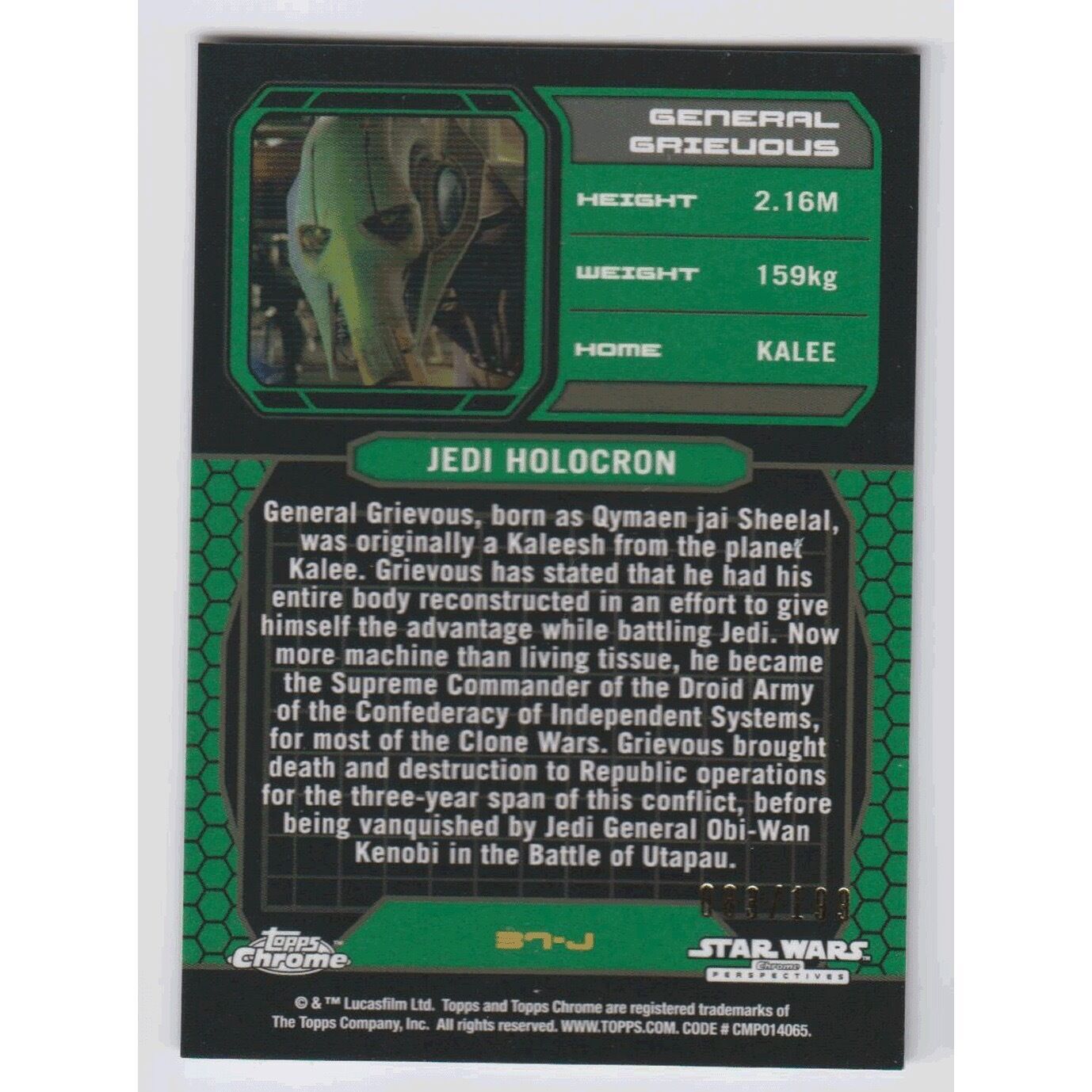 You are viewing a Star Wars Chrome refractor variant of card 37-J and is numbered only 083/199, featuring General Grievous.