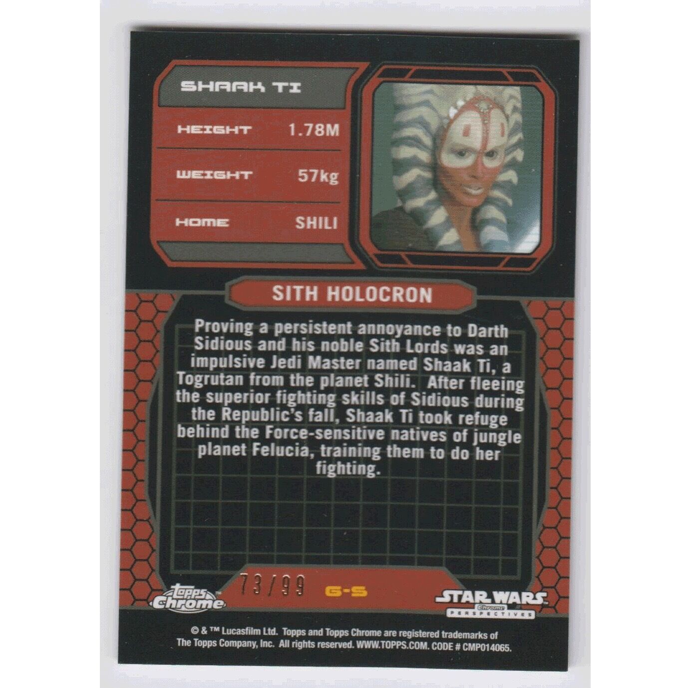 You are viewing a Star Wars Chrome refractor variant of card 6-s and is numbered only 73/99, featuring Shaak Ti.
