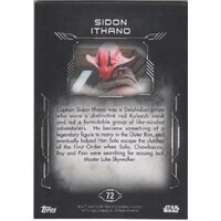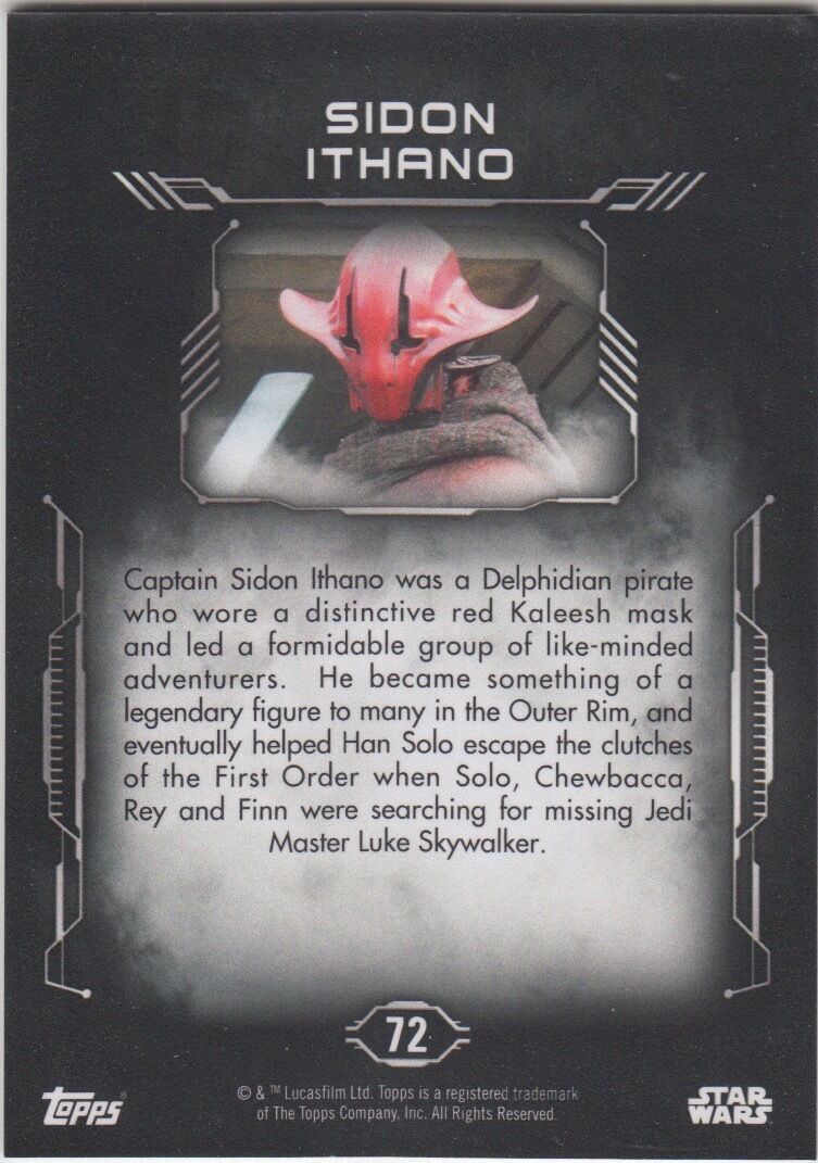 This is a Topps Star Wars Masterwork RARE Base Short Print (SP) Card of SIDON ITHANO limited run common card #72. Hard to find.