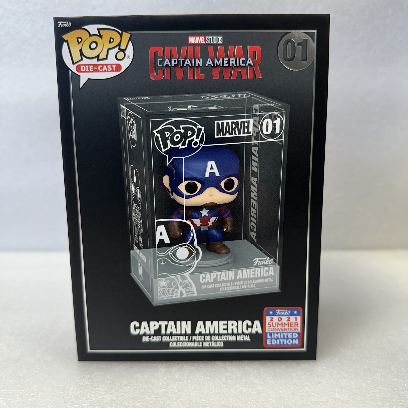 This is a Funko Shop Exclusive of Captain America #01 Civil War and is a Die Cast special release.