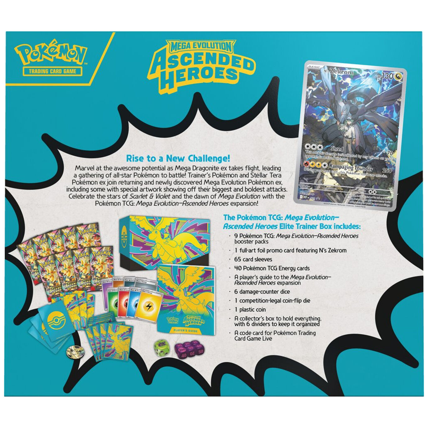 The Pokémon TCG: Mega Evolution—Ascended Heroes Elite Trainer Box includes: