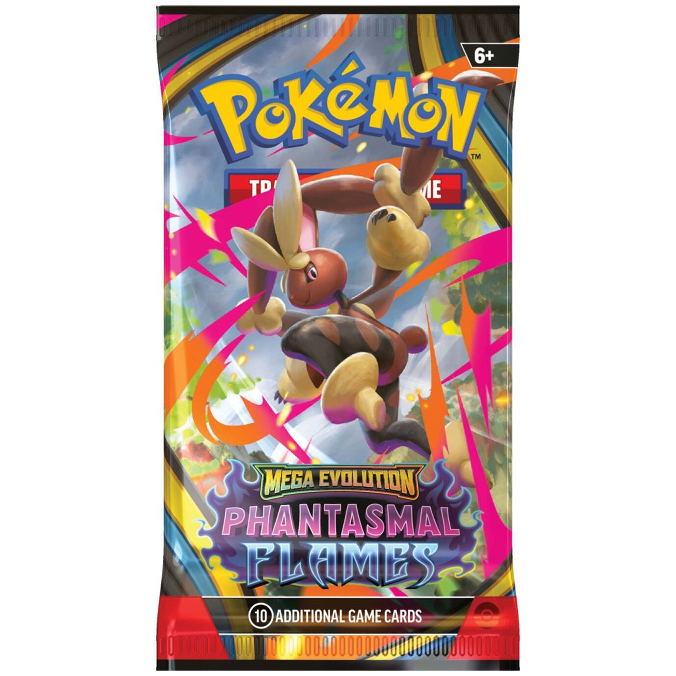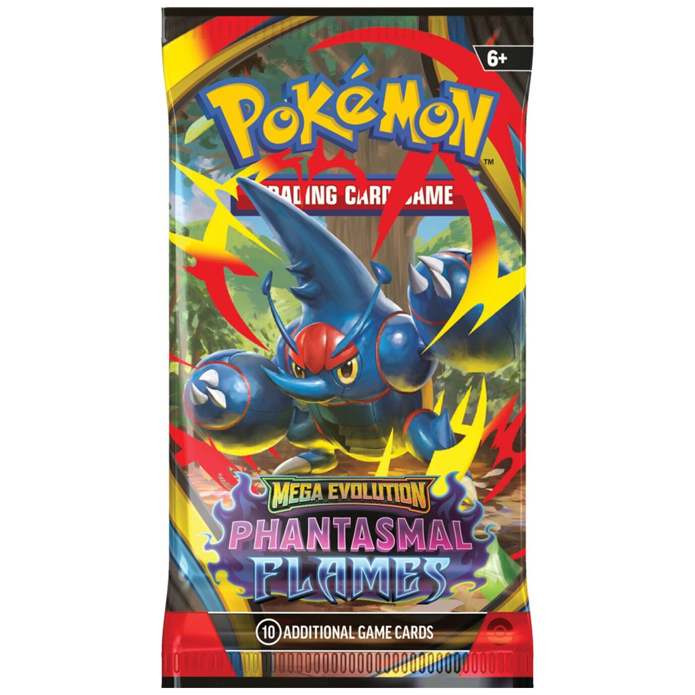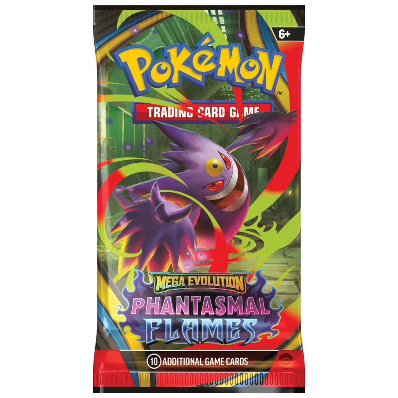 Each Pokemon TCG: Mega Evolution – Phantasmal Flames Booster pack contains 10 cards.