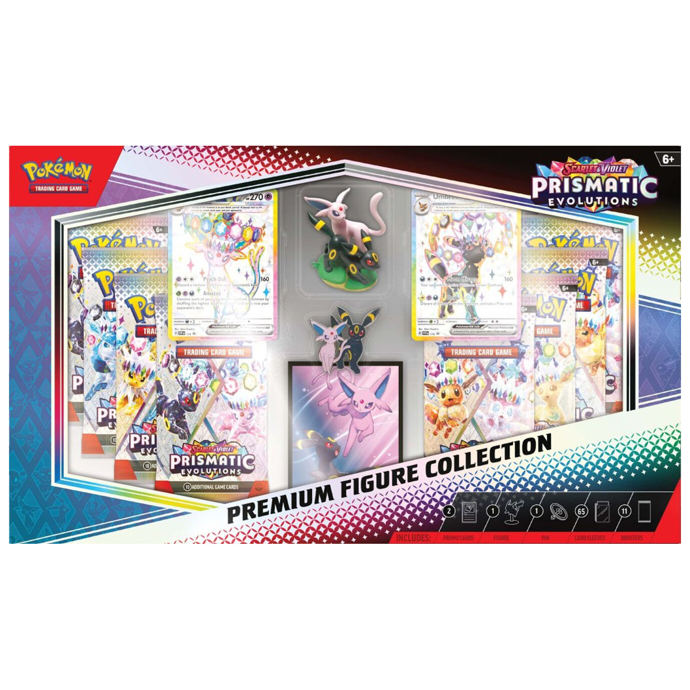 The Pokémon TCG: Scarlet & Violet—Prismatic Evolutions Premium Figure Collection includes: