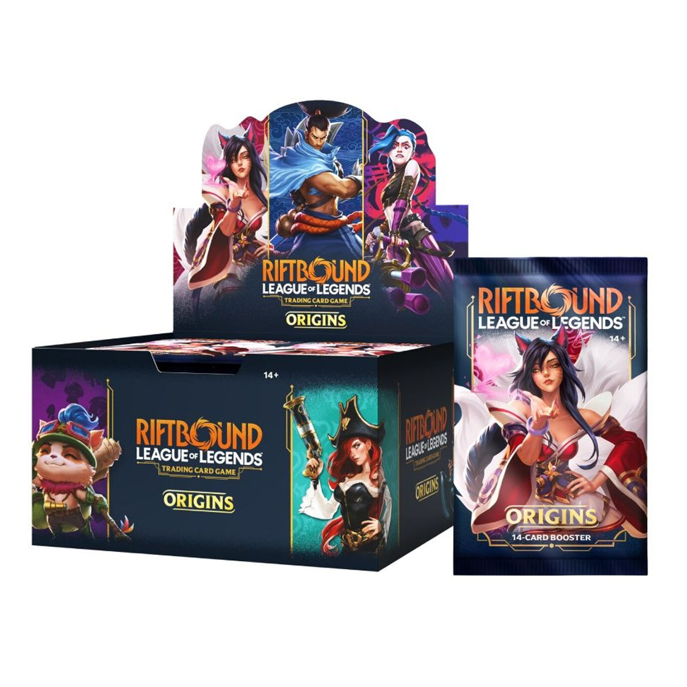 Origins, the debut set of Riftbound: League of Legends TCG, brings Champions to the battlefield like never before. Powering up your deck with 14-card booster packs that pull from a pool of nearly 300 cards, this set features a wide variety of art from legendary League of Legends artists. Will you pull an epic game-changer, a stunning alternate art card, or a pack loaded with power?