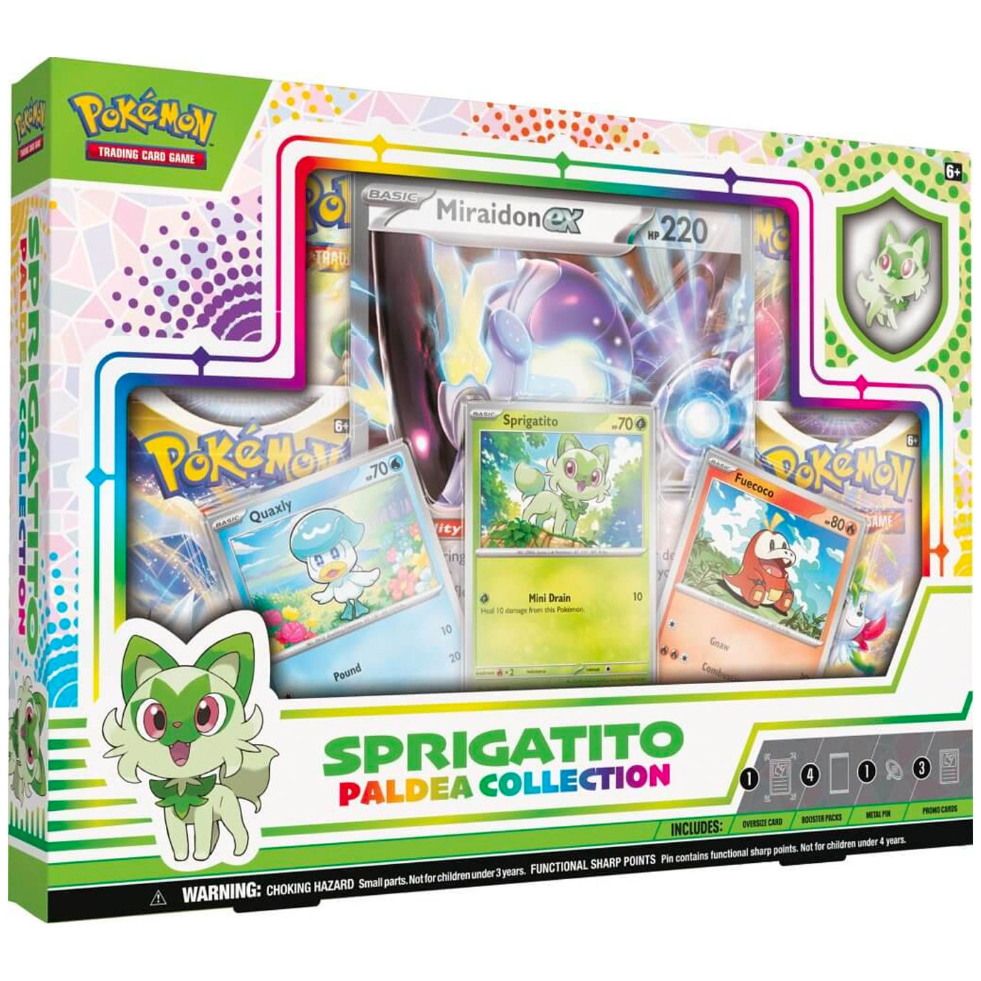 • 1 collector’s pin featuring Sprigatito, Fuecoco, or Quaxly