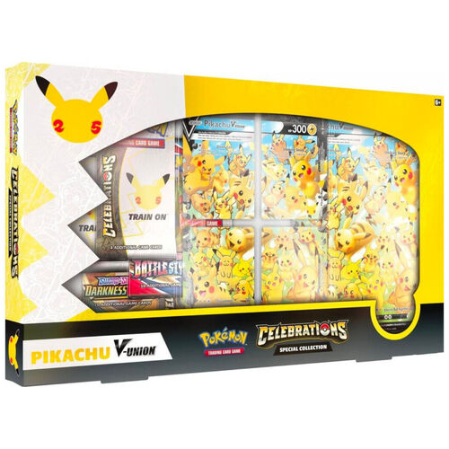The Pokémon TCG: Celebrations Special Collection—Pikachu V-UNION includes: