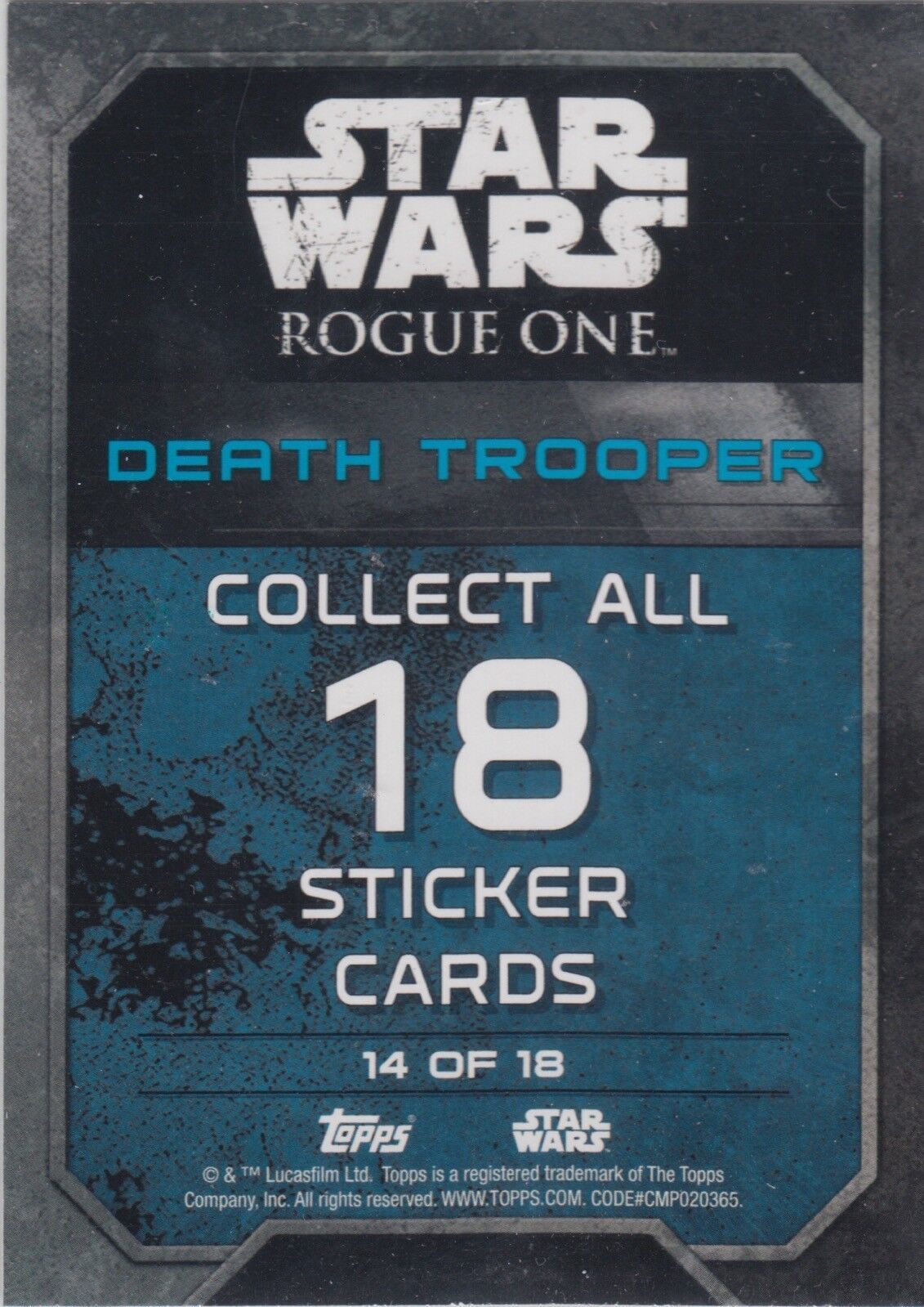 Topps Star Wars Rogue One Mission Briefing Sticker Card Death Trooper #14 of 18