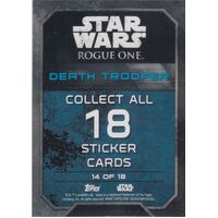 This is the single Sticker Card #14 of 18 featuring Death Trooper from the Topps Star Wars Rogue One Mission Briefing trading card set. Nice card, hard to complete the set.